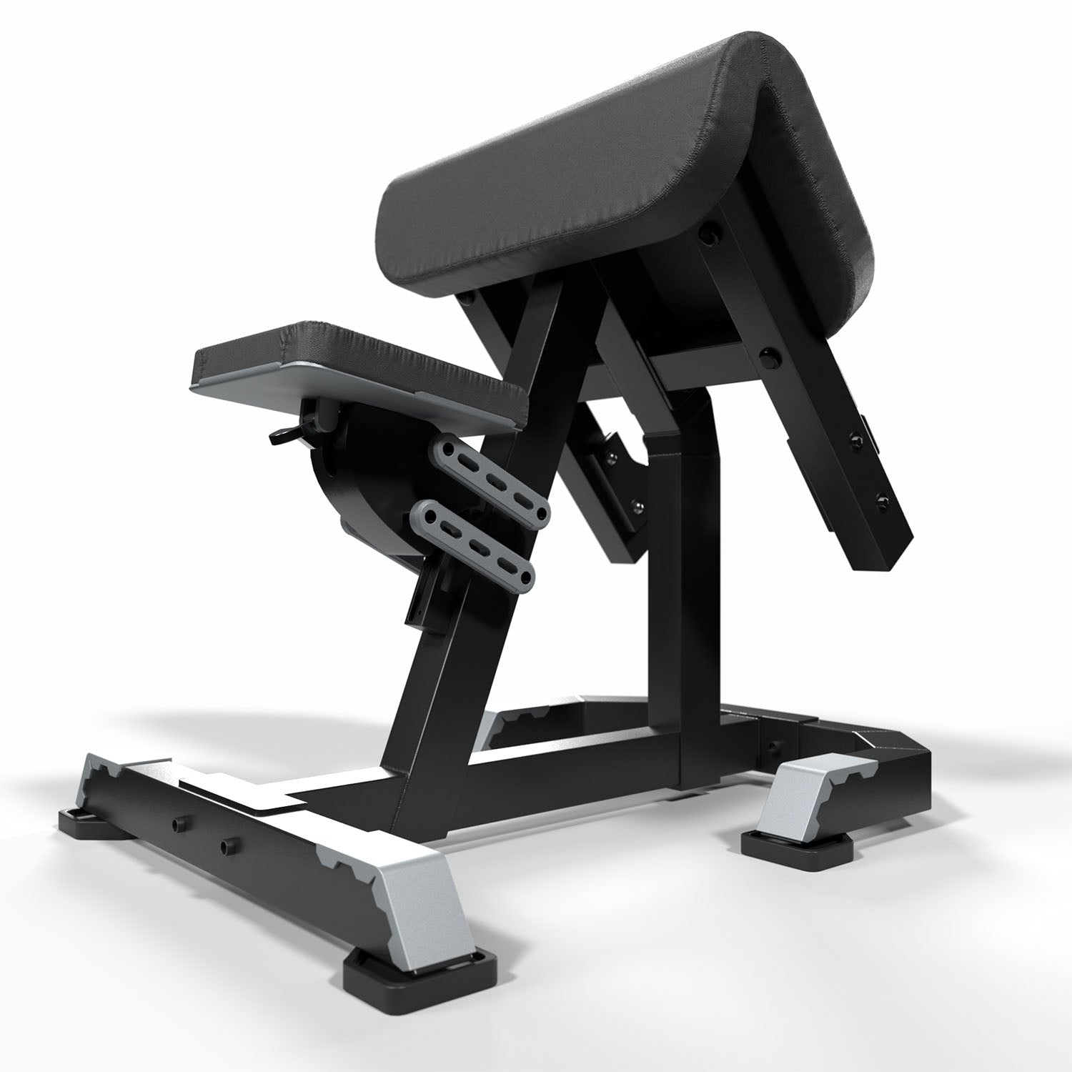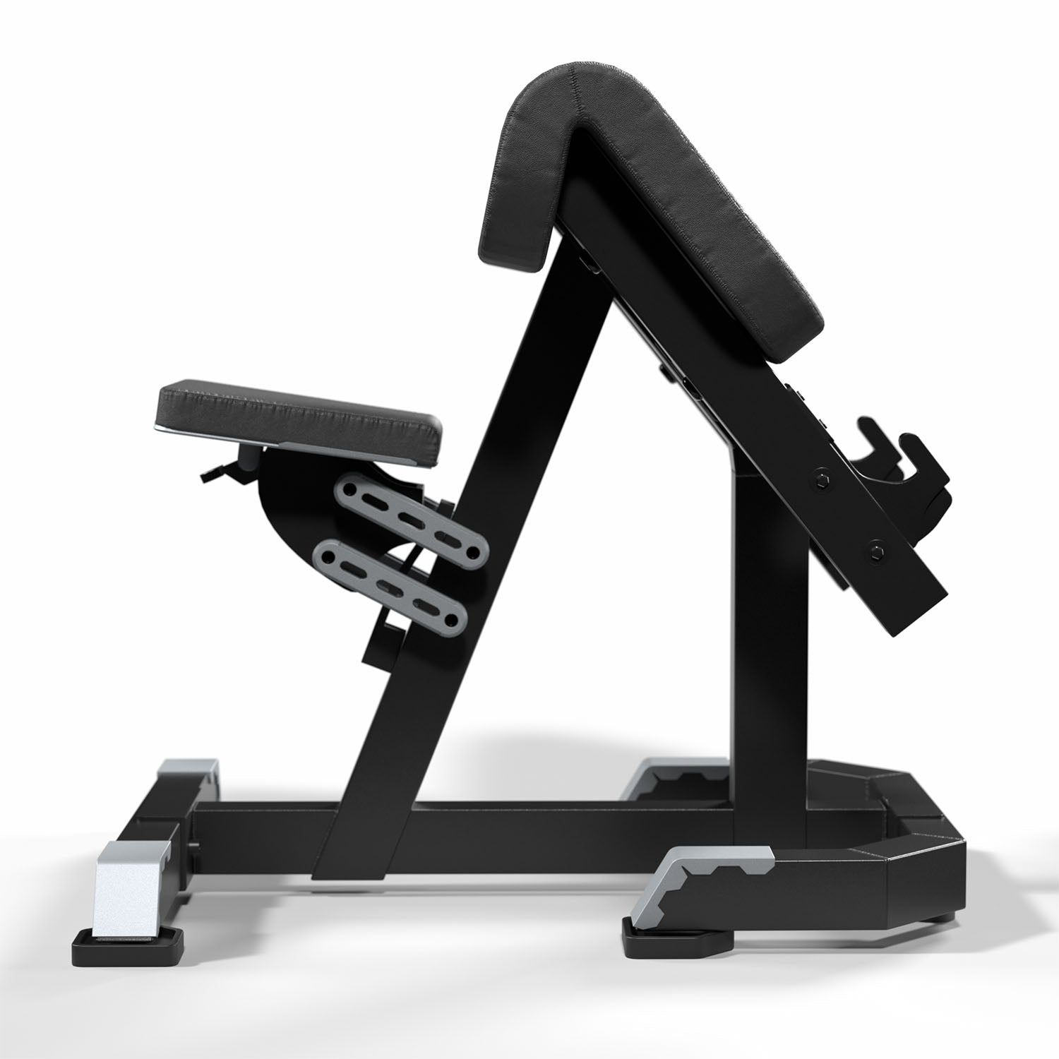 El equipo incorpora un pad preacher ergonómico de alta densidad, diseñado para mantener los brazos en la posición correcta durante el ejercicio, reduciendo la participación de otros músculos y enfocando el trabajo directamente en el bíceps. Además, sus agarres con diseño anatómico y superficie antideslizante permiten una ejecución cómoda, segura y estable del movimiento.