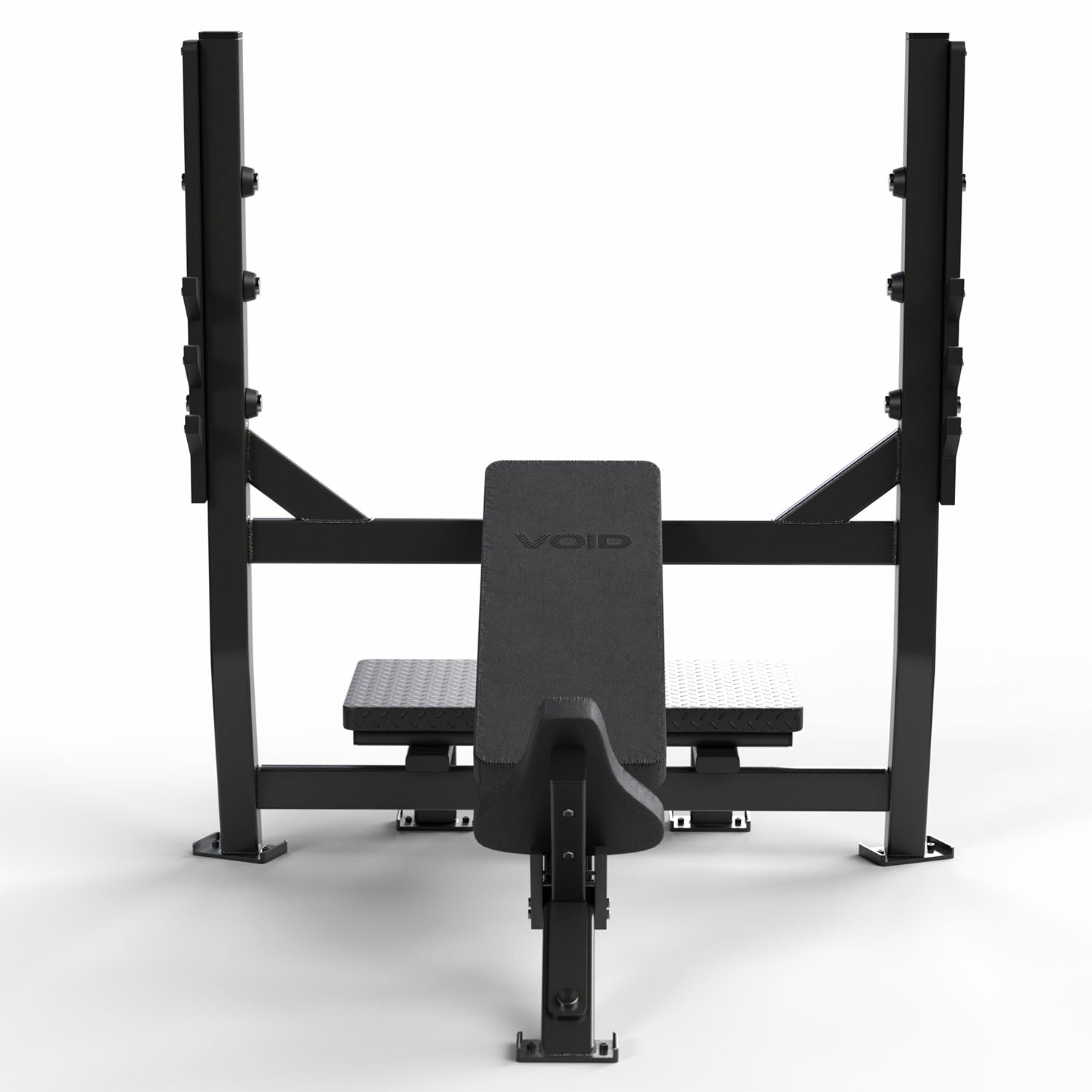 El diseño de la Olympic Incline Bench VOID permite ejecutar el press inclinado de forma estable y biomecánicamente eficiente, optimizando el ángulo de trabajo para enfatizar la activación del pectoral superior. La estructura incorpora soportes de barra olímpica con múltiples niveles de altura, permitiendo ajustar la posición de salida según la estatura del usuario y mejorando la seguridad durante el levantamiento.