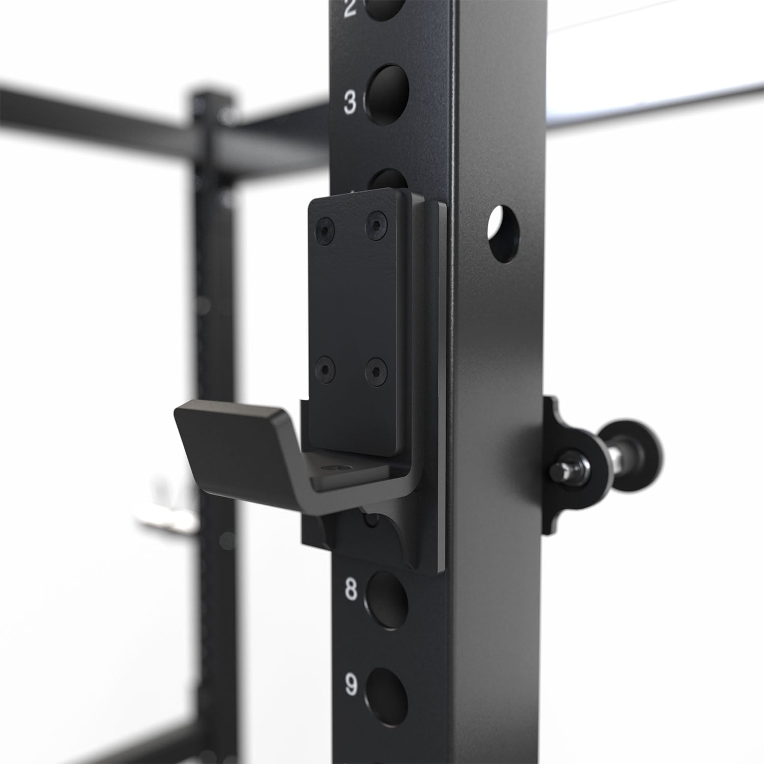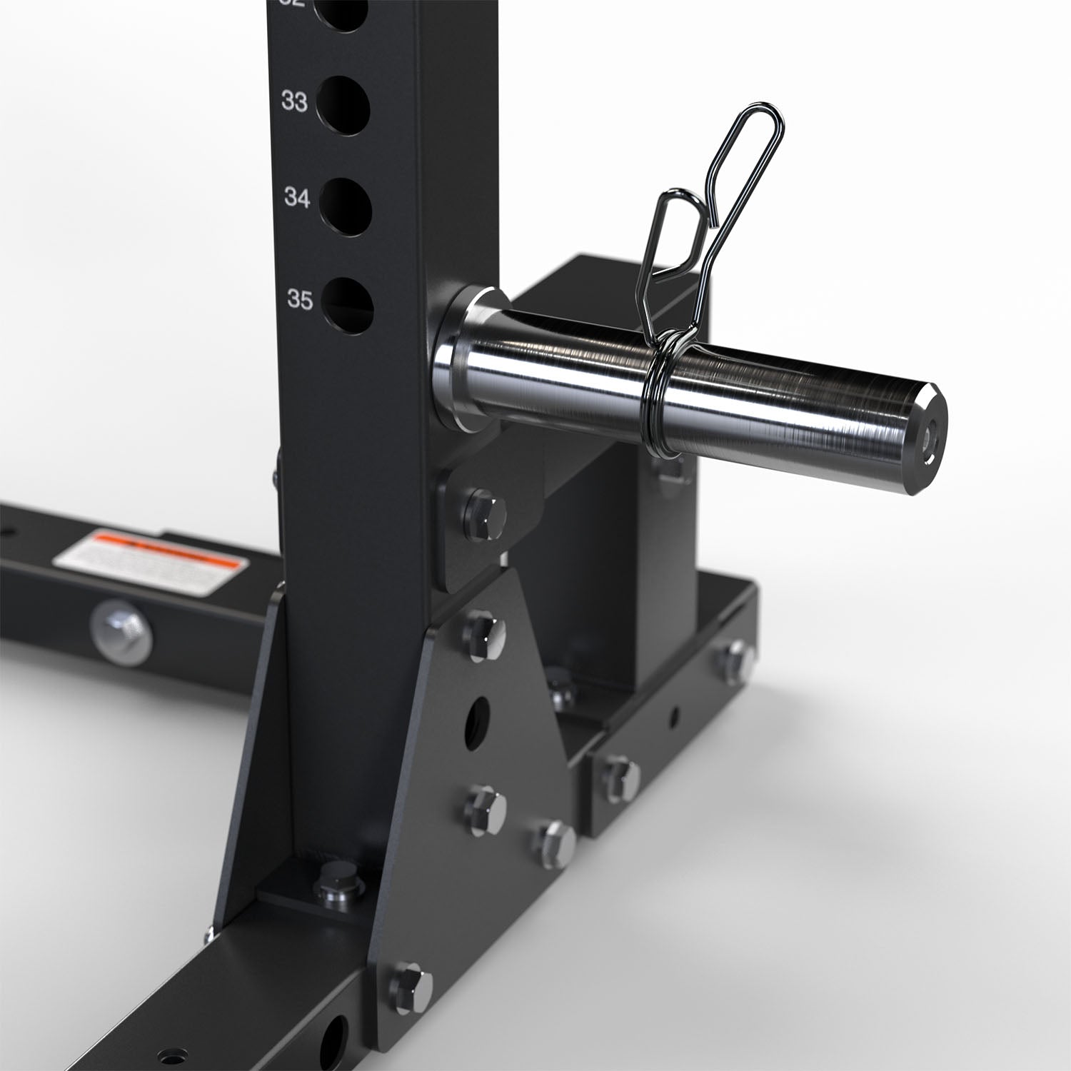 La estructura del Power Rack VOID está construida con acero estructural de alta resistencia, utilizando postes verticales de 75 x 75 mm y base reforzada de 50 x 70 mm, proporcionando una estabilidad excepcional durante levantamientos pesados como sentadillas, bench press, overhead press y otros ejercicios de fuerza. Su sistema de perforaciones a lo largo de los postes permite ajustar con precisión los accesorios y posiciones de trabajo para adaptarse a diferentes usuarios y tipos de entrenamiento.