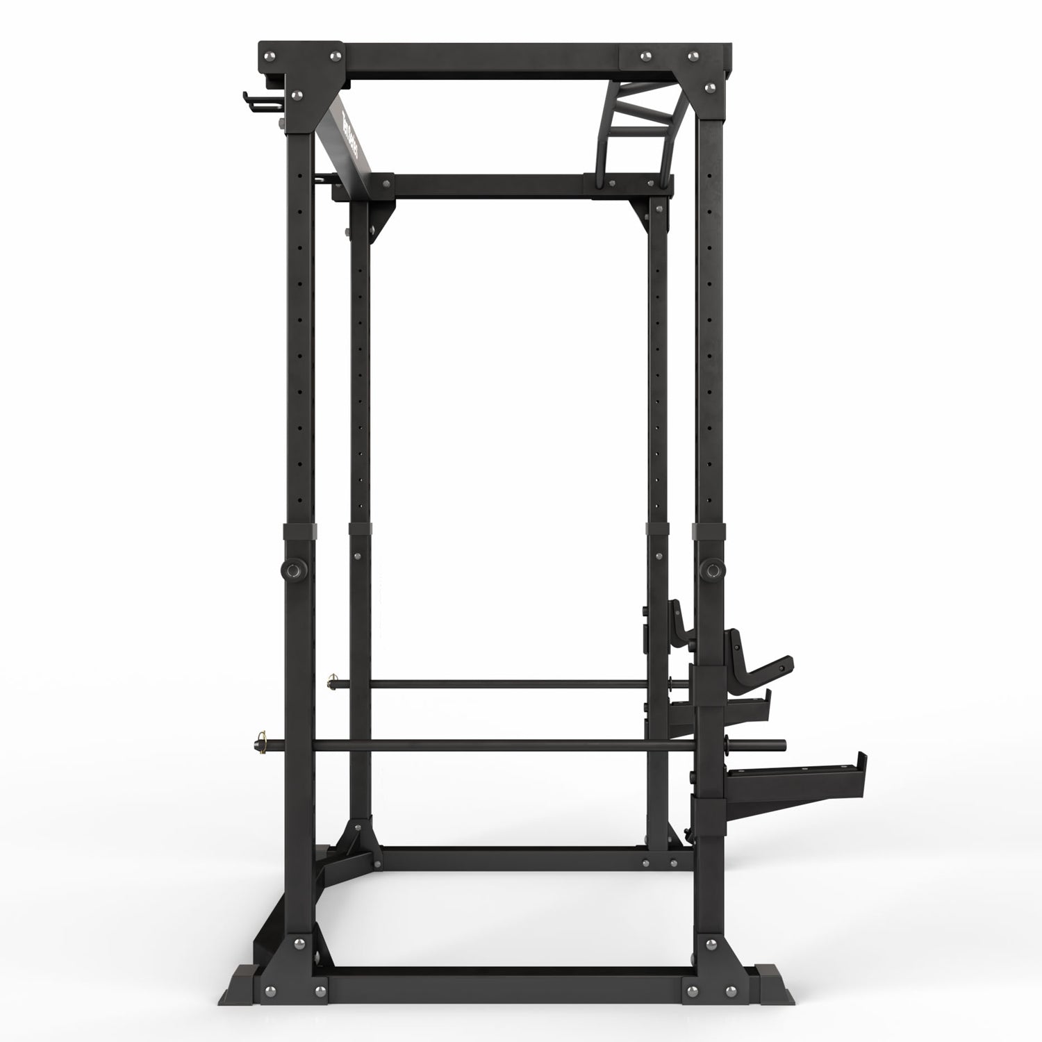 Su tamaño compacto (126 x 117.5 x 217.2 cm) permite una instalación práctica sin comprometer funcionalidad. Cuenta con múltiples niveles de ajuste para barra y accesorios, ideales para sentadillas, press de banca, dominadas y más. Todo en una estructura sólida, capaz de soportar intensas sesiones de entrenamiento.