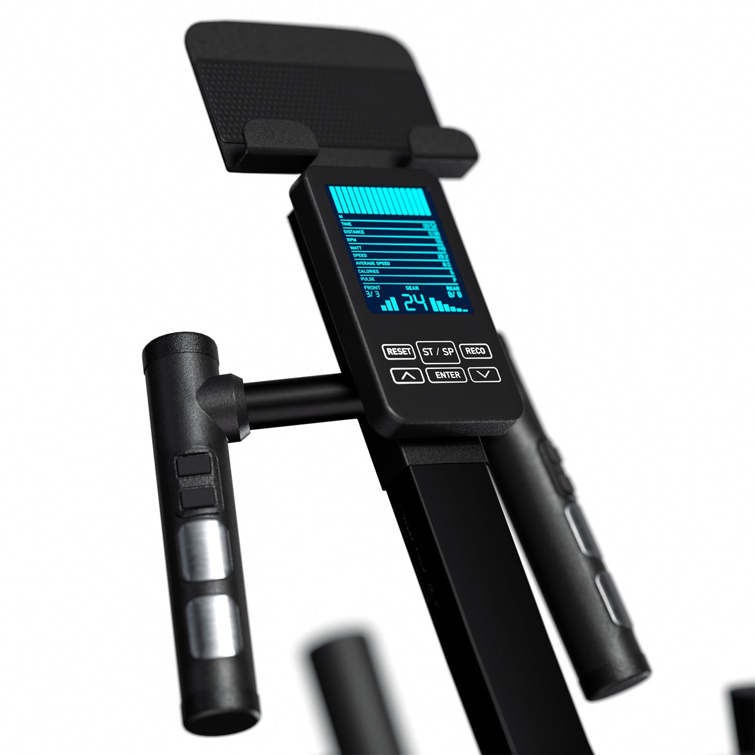 Su pantalla inteligente te brinda en tiempo real datos esenciales como velocidad, tiempo, distancia y calorías quemadas, para que puedas monitorear tu progreso con precisión. Además, su avanzada resistencia magnética con 24 niveles de intensidad te permite ajustar el esfuerzo a tu nivel, desde sesiones suaves hasta entrenamientos de máxima exigencia.