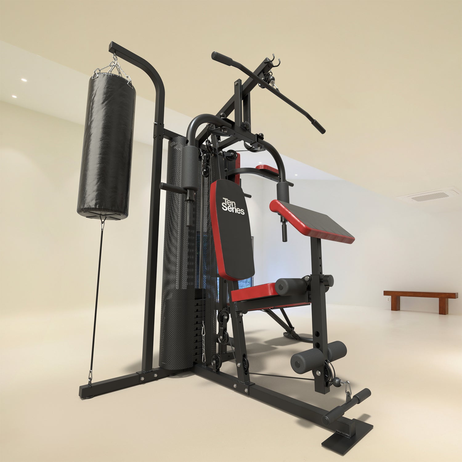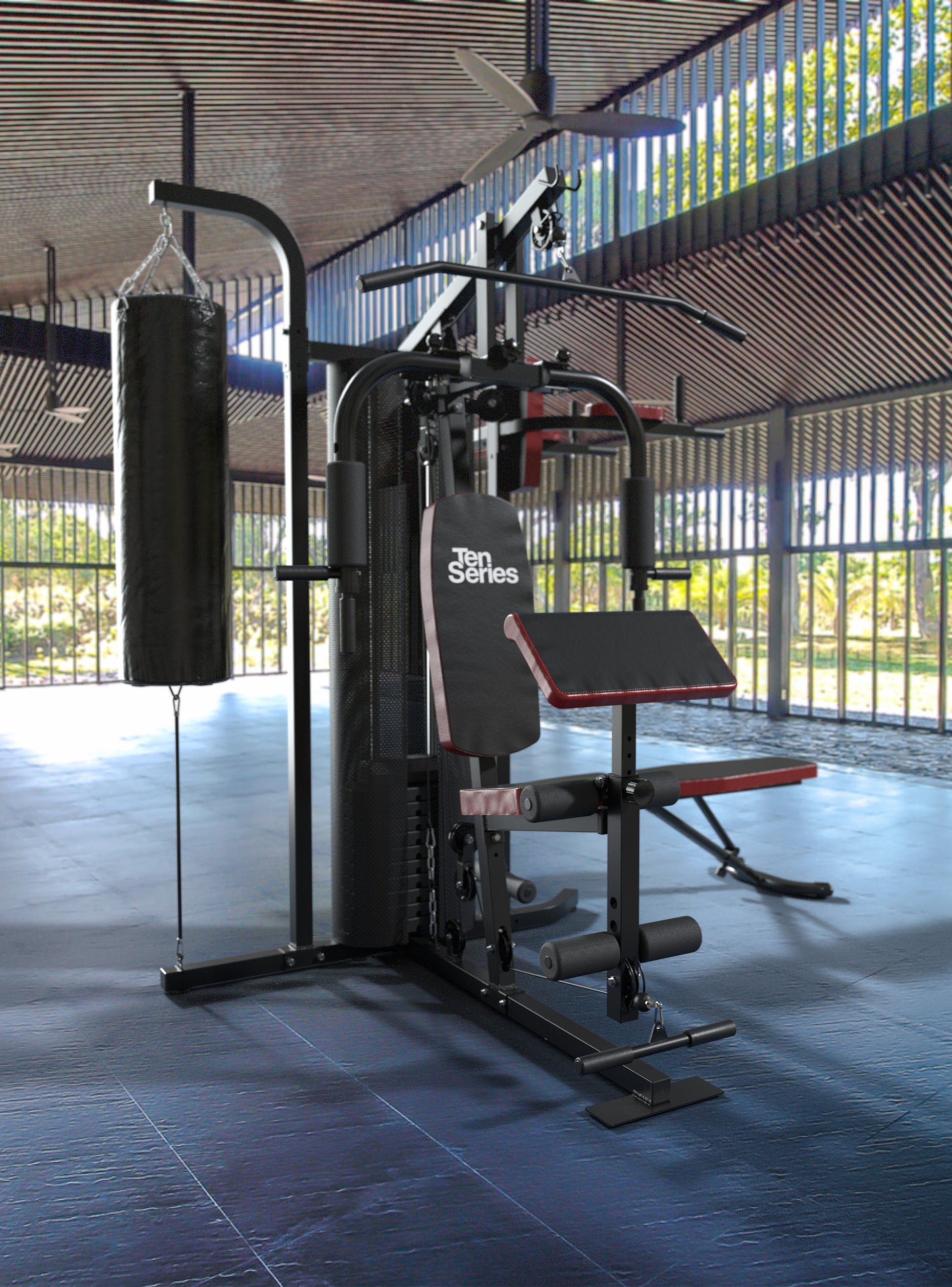 El Home Gym G3000 Plus Ten Series Boxing es una estación de entrenamiento multifuncional de alto rendimiento que combina máquina de musculación, equipo de resistencia y punching bag de boxeo en un solo diseño compacto y robusto. Ideal para el entrenamiento en casa o en gimnasios, permite que hasta tres personas se ejerciten al mismo tiempo, ofreciendo un plan completo para fortalecer músculos, mejorar la resistencia cardiovascular y practicar boxeo.