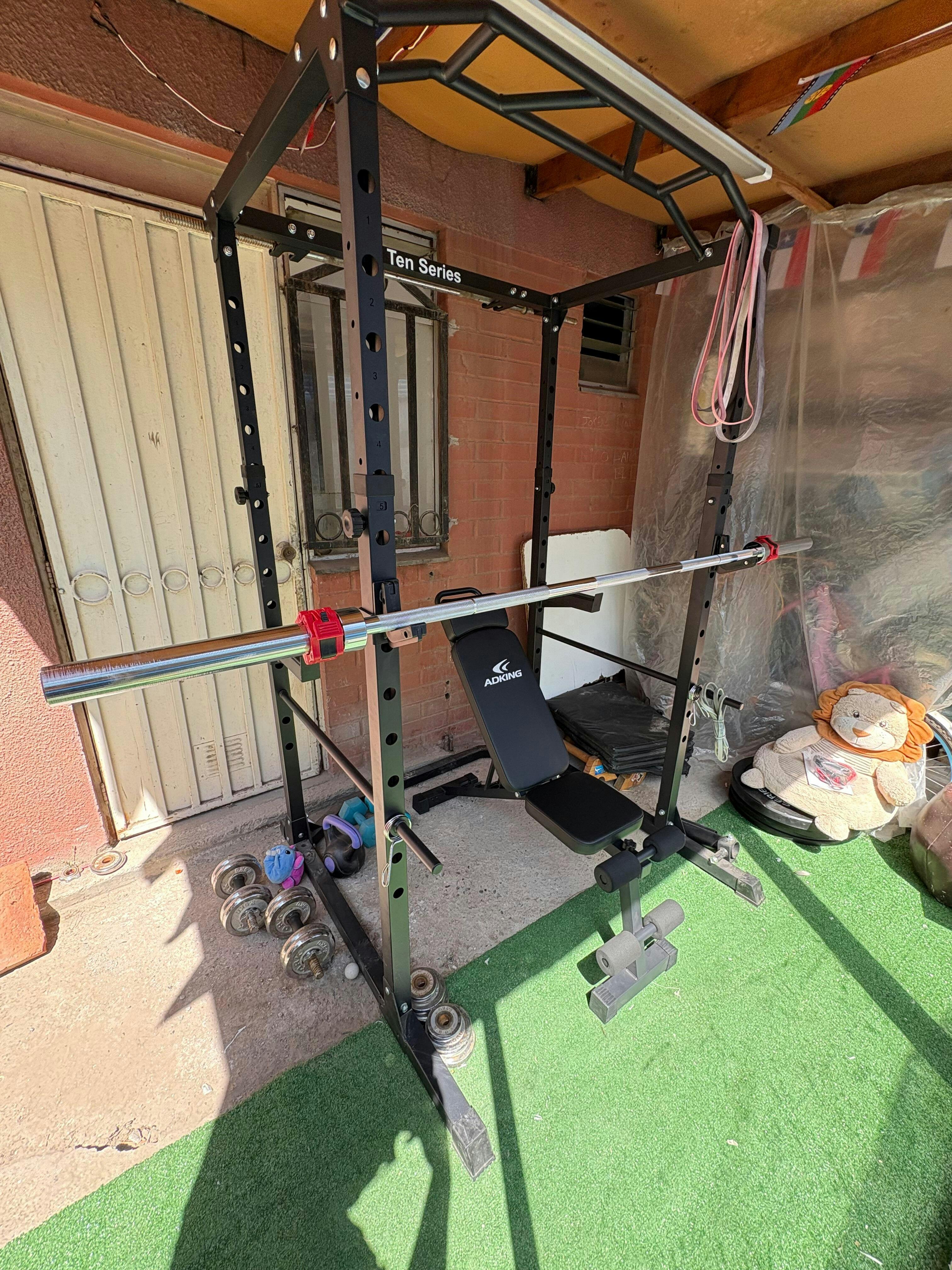 Su tamaño compacto (126 x 117.5 x 217.2 cm) permite una instalación práctica sin comprometer funcionalidad. Cuenta con múltiples niveles de ajuste para barra y accesorios, ideales para sentadillas, press de banca, dominadas y más. Todo en una estructura sólida, capaz de soportar intensas sesiones de entrenamiento.