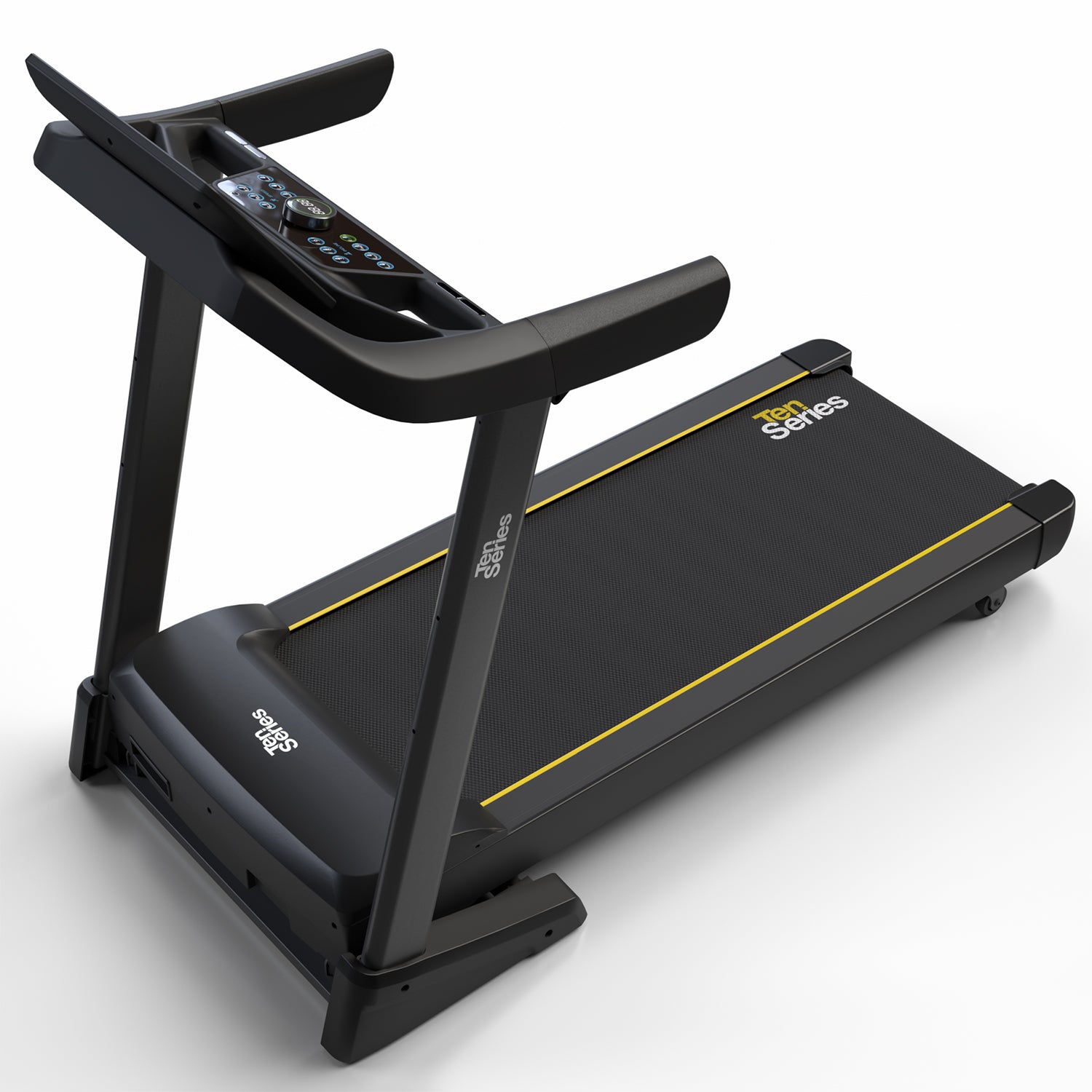 La Trotadora Black A9 Inclinación Automática Ten Series combina tecnología innovadora con conveniencia excepcional. Con un motor de 2,75 HP y 1,5 HP de potencia continua, la Black A9 de Ten Series ofrece un rendimiento potente y estable para tus entrenamientos.