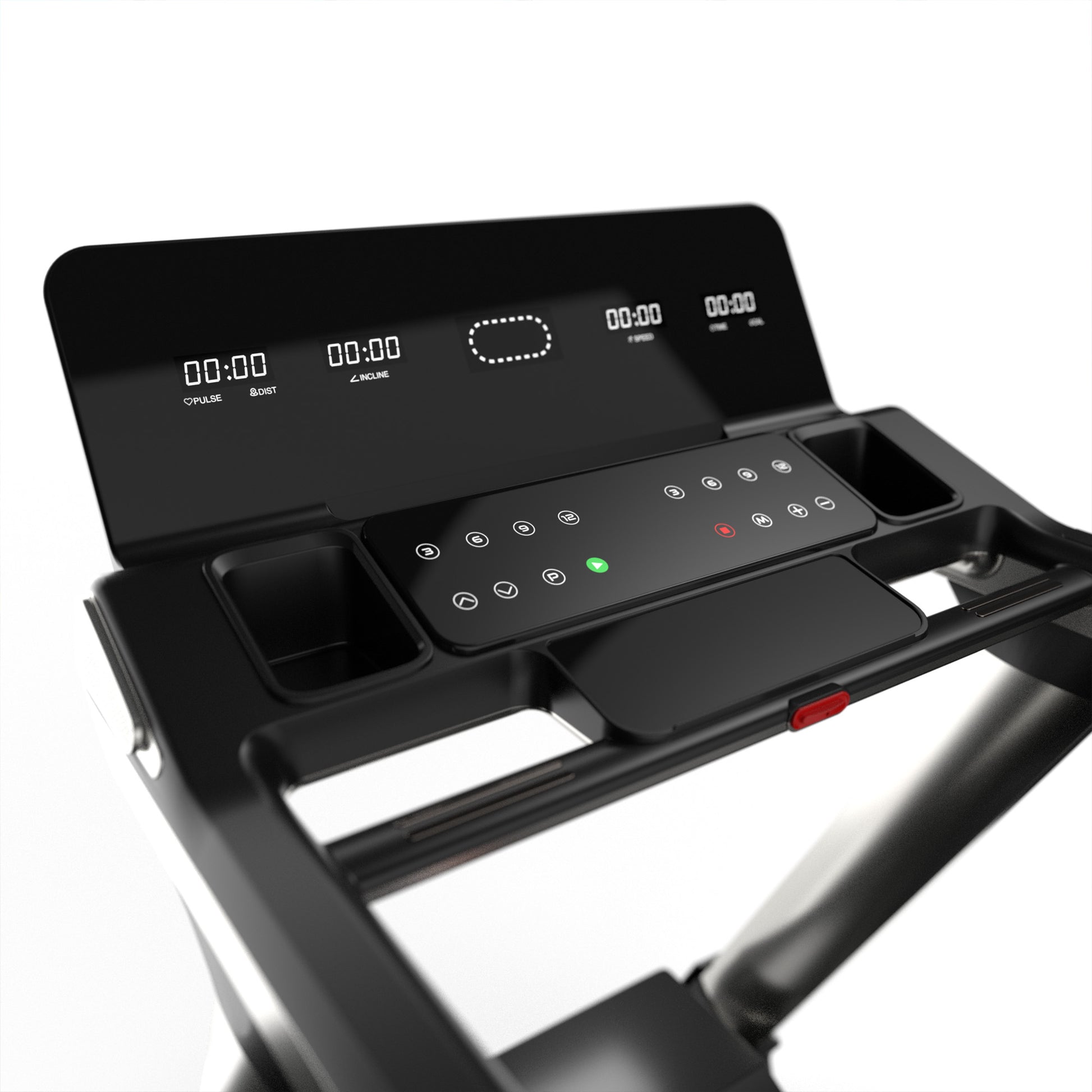 Su pantalla LED de 34” proporciona datos esenciales de tu entrenamiento, incluyendo la frecuencia cardíaca, tiempo, velocidad, distancia recorrida y calorías quemadas, manteniéndote informado en todo momento.