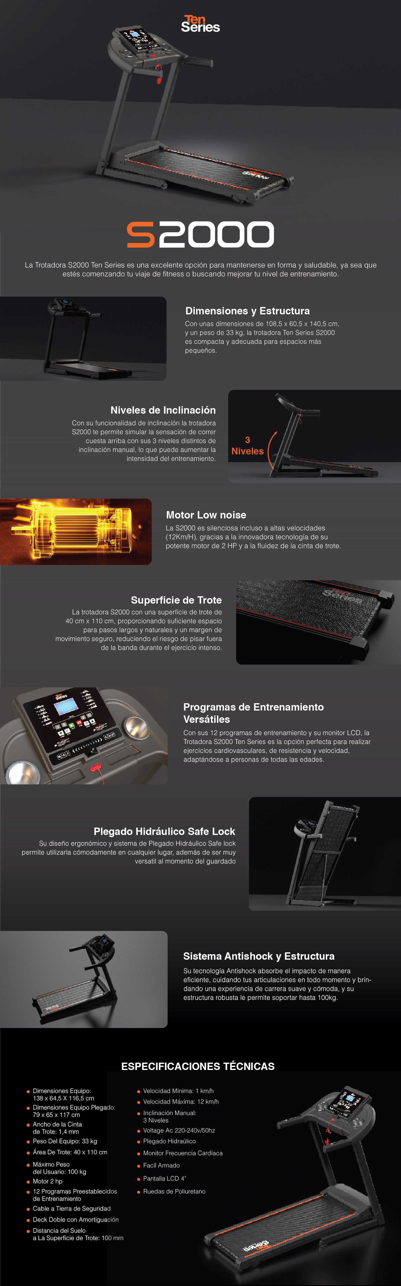 Trotadora S2000 Ten Series 12 Km/h