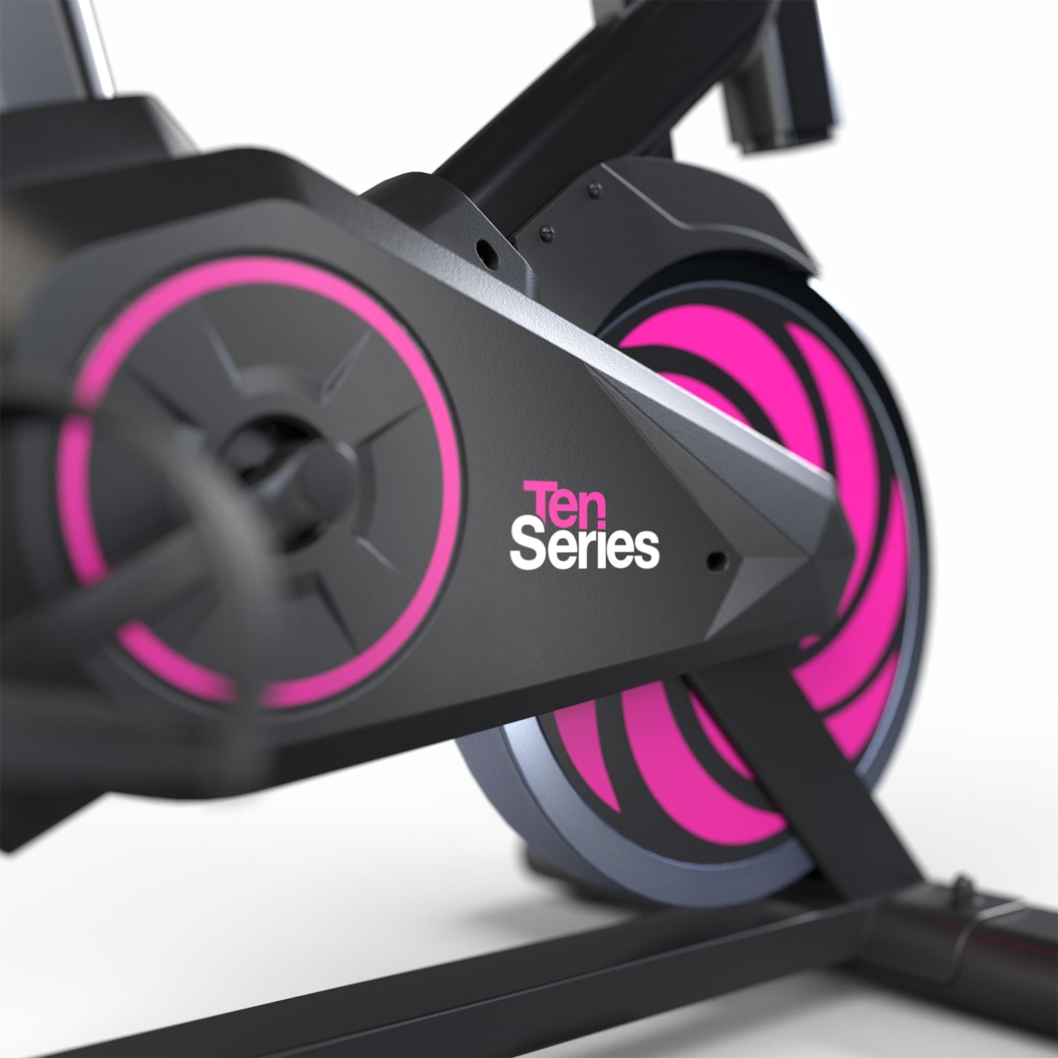 La Bicicleta Spinning SB PINK Ten Series está diseñada para quienes buscan rendimiento, estilo y comodidad en un solo equipo. Con una estructura sólida y materiales de alta calidad, ofrece una experiencia de entrenamiento estable, fluida y eficiente, ideal para ejercitarse en casa con estilo.