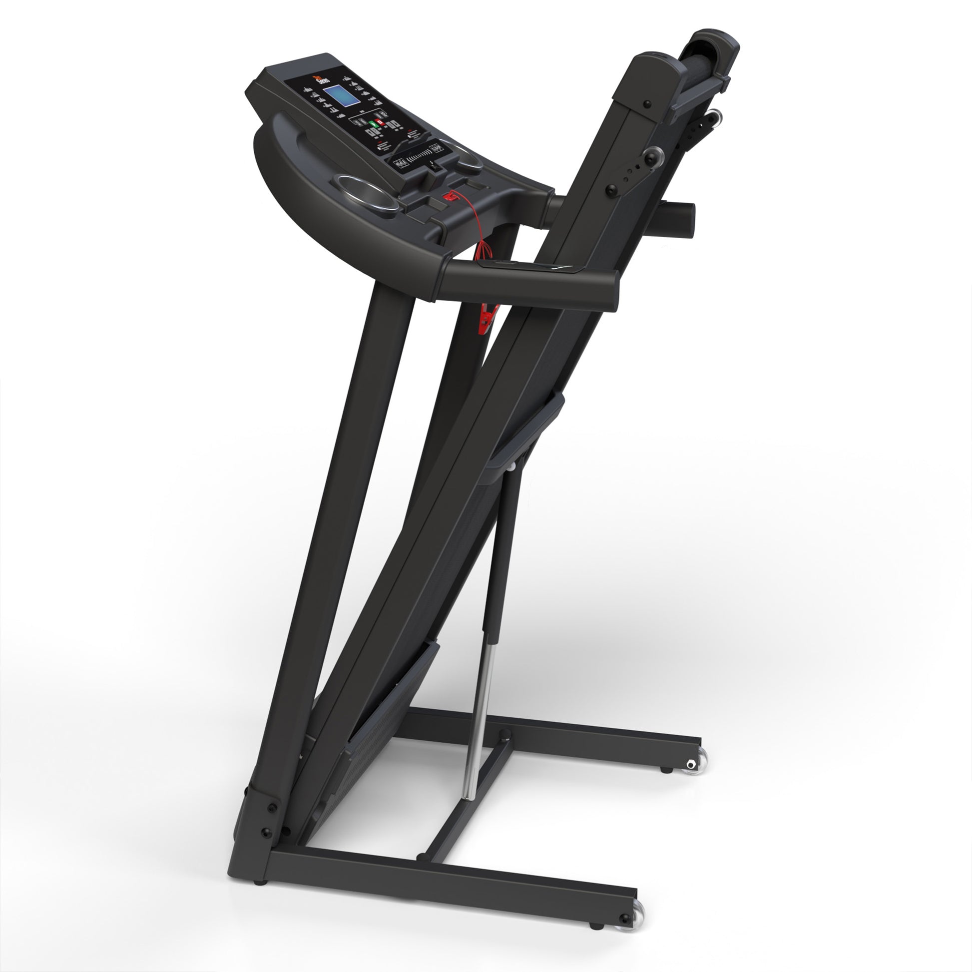 Sus dimensiones son: Alto: 108,5 cm, Ancho: 60,5 cm, Largo: 140,5 cm, y tiene un peso de 33 kg, lo que la hace compacta y adecuada para espacios más pequeños. Su superficie de trote es de 40 cm x 110 cm, proporcionando un área cómoda para correr.
